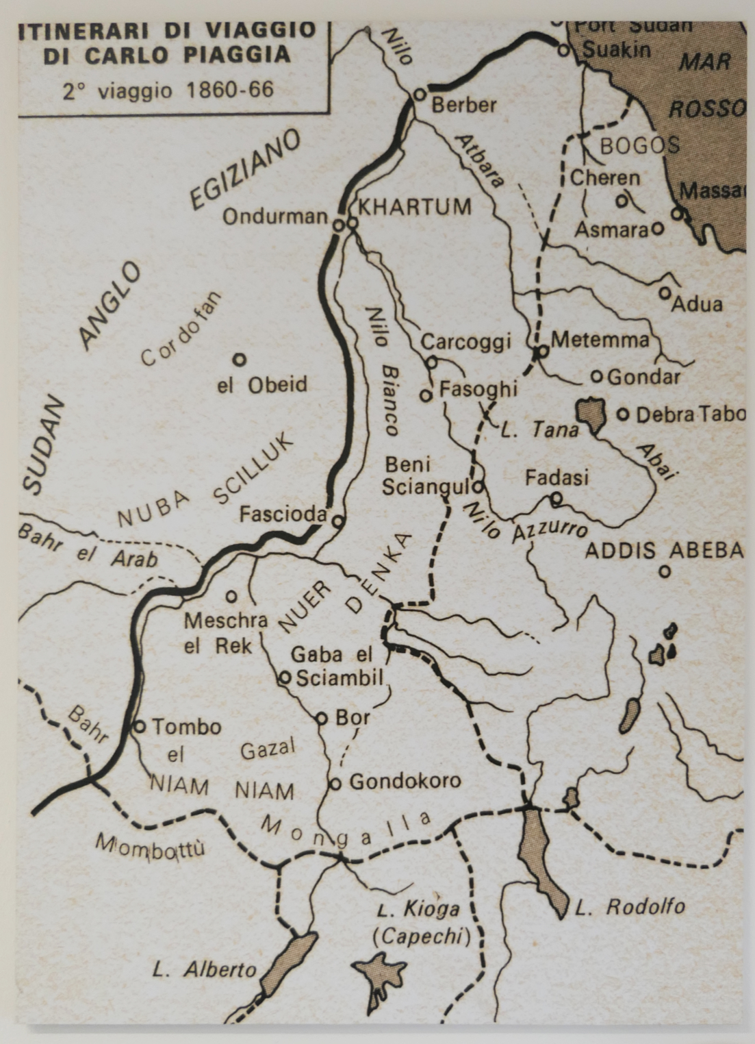 Infine dopo aver progettato una speculazione comprando seimila piante di caffè da portare fuori dall’Etiopia, Piaggia decise di lasciare il paese e, dopo aver un’ultima volta attraversato il lago su un barca di papiro, prese la strada carovaniera che portava in Sudan e il 29 marzo 1875 raggiunse la capitale Knartum.